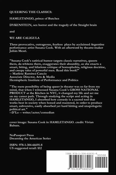 QUEERING THE CLASSICS brings together three outrageous, fearless, provocative performance texts by acclaimed Argentine playwright and performer Susana Cook. HAMLETANGO, DYKENSTEIN and WE ARE CALIGULA are powerful, mordantly funny plays that queer the classics in more ways than one. This collection features an afterword reflecting on Susana Cook's work by theatre-maker Julián Mesri.