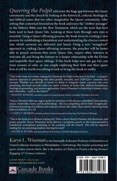 Queering the Pulpit addresses the huge gap between the Queer community and the church by looking at the historical, cultural, theological, and biblical issues that too often marginalize the Queer community. After setting that contextual foundation the book addresses the "clobber passages" in the Hebrew Bible and the New Testament, which are the texts that have been used to bash Queer folx. Looking at these texts through new eyes is essential. Using a Queer-affirming process, the book turns to creating a new process for establishing a foundation and understanding the diverse context into which sermons are delivered and heard. Using a new "sexegetical" approach to crafting Queer-affirming sermons, the preacher will be better able to preach sermons that invite Queer folx, inspire other listeners to welcome all, and bring the listener to a deeper relationship with the Divine and hopefully their Queer siblings. If this book helps save one gay kid, one trans woman of color, or one couple exploring their faith and their Queer lives it will be worth everything it took to bring this book to reality.