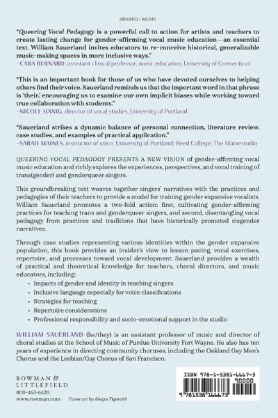 List of Figures and Tables Preface. Locating Myself Chapter 1. Understanding Gender in Teaching and Learning Chapter 2. Shifting Perspective: Theoretical Framework & Methodology Chapter 3. Trans Feminine Singers Chapter 4. Trans Masculine Singers Chapter 5. Trans-Nonbinary Singers Chapter 6. Pedagogical Considerations for Gender-Affirming Vocal Music Education Chapter 7. Queering as a Teacher's Habit of Mind Appendix 1. Glossary of LGBTQ+ Terms Appendix 2. Short List of Songs Written for TGQ Singers or by TGQ Composers Appendix 3. Musicals & Opera Featuring Gender Expansive Characters Appendix 4. Gender-Neutral Performance Attire Guidelines Appendix 5. Sample Affirmation Policy Statement for Studio Teachers and Choral Directors Appendix 6. Additional Resources Selected Bibliography About the Author