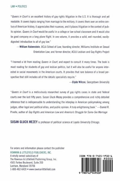 Queers in Court is a meticulously researched survey of gay rights cases in state and federal courts over the last fifty years. Susan Gluck Mezey provides a comprehensive and richly detailed reference that is indispensable to understanding the interplay in American policymaking among judges, other legal and political elites, and public opinion. A truly enlightening book. -- Daniel R. Pinello, author of Gay Rights and American Law and America?s Struggle for Same-Sex Marriage I learned a lot from reading Queers in Court, and expect to consult it many times. The book is must reading for students of gay and lesbian politics, but it will also be useful for anyone interested in social movements in the American courts. It provides that rare balance of a broad perspective that still includes all of the details specialists require. -- Clyde Wilcox, Professor of Government, Georgetown University Queers in Court provides a nuanced historical survey that builds on the already-rich scholarly analysis of U.S. judicial rulings on sexual diversity. Susan Gluck Mezey's background in the exploration of rights litigation by other traditionally-marginalized groups allows her to draw parallels to other struggles without ignoring the distinctive features of queer claims. She also punctures some of the myths about American judicial "activism"-pointing to the recurrent restraint of federal courts and of most state courts. This is a healthy response to both overly-optimistic litigants and highly-selective critics who don't want to believe that there are any LGBT claims that have popular support. -- David Rayside, Professor of Political Science and Director of the Mark S. Bonham Centre for Sexual Diversity Studies, University of Toronto I view the book as a welcome addition to a library supporting gay rights research and believe it would be useful to a broader audience of other scholars, activists, and advocates. -- Sharon Whitney Law and Politics Book Review A valuable resource for attorneys and scholars. Booklist, September 28, 2009 Queers in Court is an excellent overview of gay rights litigation in the U.S. It is thorough yet readable. It covers topics ranging from marriage to the military, it covers them over half a century of American history, it appreciates their nuances, and it places litigation in the context of public opinion. Queers in Court would be useful in a college or law school classroom and it would also be good company on a long plane flight. In one volume, it provides a solid, well-rounded, easily-digested introduction to all of gay law. -- William Rubenstein, UCLA School of Law; Founding Director, Williams Institute on Sexual Orientation Law; and Former Director, ACLU Lesbian & Gay Rights Project Overall, the book makes a tremendous contribution to the study of judicial policymaking and to the study of sexuality and politics by chronicling, in great detail, the litigation surrounding important elements of LGBT family life...Mezey has created a tremendous resource of students and cholars of the courts and the study of sexuality. The author has taken great care in analyzing the reasoning of important cases...Overall, this book, particularly combined with Mezey*s QUEERS IN COURT, is an excellent addition to the growing scholarship on law, politics, and policies relating to sexual minorities and presents more evidence why this topic is particularly important for scholars of the judiciary. The Law and Politics Book Review