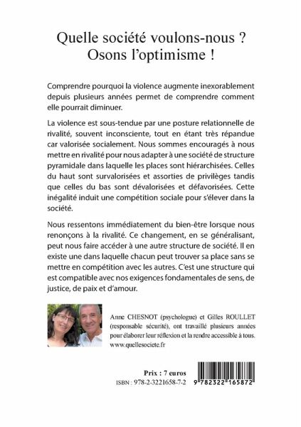 La violence, qui augmente inexorablement, est sous-tendue par de la rivalité. Or nous sommes actuellement encouragés socialement à nous mettre en rivalité, pour nous adapter à une société de structure pyramidale dans laquelle les places sont hiérarchisées. Celles du haut sont survalorisées et assorties de privilèges tandis que celles du bas sont dévalorisées et défavorisées. Cette inégalité induit (entre autres) une compétition sociale pour s'élever dans la société, mettant en difficulté voir excluant ceux qui ne veulent pas rivaliser.