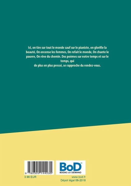 Ici, on tire sur tout le monde sauf sur le pianiste, on glorifie la beauté, On encense les femmes, On refait le monde, On chante le pauvre, On rêve du chemin. Des poèmes sur notre temps et sur le temps, qui de plus en plus pressé, se rapproche du rendez-vous.