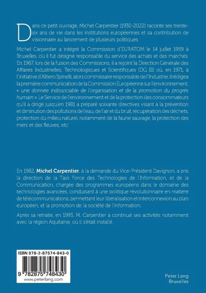 Dans ce petit ouvrage, Michel Carpentier (1930-2022) raconte ses trente-six ans de vie dans les institutions européennes et sa contribution de visionnaire au lancement de plusieurs politiques.