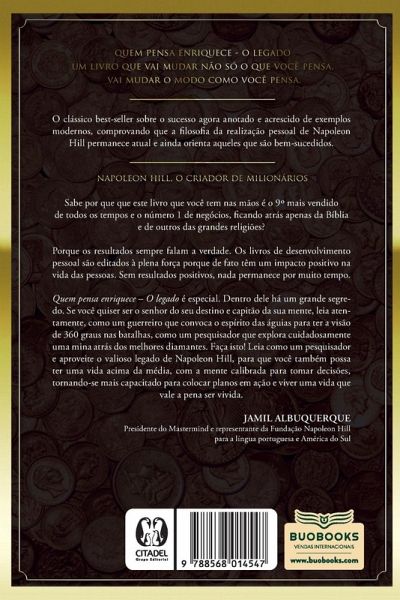 O 9º livro mais vendido de todos os tempos, que influencia líderes e empreededores em todo o mundo, agora em uma edição especial atualizada para o século XXI. O clássico best-seller sobre o sucesso agora anotado e acrescido de exemplos modernos, comprovando que a filosofia da realização pessoal de Napoleon Hill permanece atual e ainda orienta aqueles que são bem-sucedidos. Um livro que vai mudar não só o que você pensa, vai mudar o modo como você pensa.