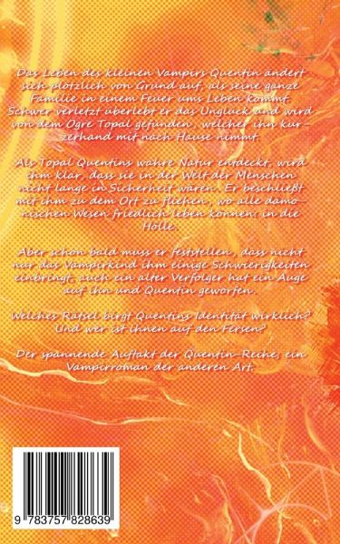 Das Leben des kleinen Vampirs Quentin ändert sich plötzlich von Grund auf, als seine ganze Familie in einem Feuer ums Leben kommt. Schwer verletzt überlebt er das Unglück und wird von dem Ogre Topal gefunden, welcher ihn kurzerhand mit nach Hause nimmt.Als Topal Quentins wahre Natur entdeckt, wird ihm klar, dass sie in der Welt der Menschen nicht lange in Sicherheit wären. Er beschließt mit ihm zu dem Ort zu fliehen, wo alle dämonischen Wesen friedlich leben können: in die Hölle.Aber schon bald muss er feststellen, dass nicht nur das Vampirkind ihm einige Schwierigkeiten einbringt, auch ein alter Verfolger hat ein Auge auf ihn und Quentin geworfen.Welches Rätsel birgt Quentins Identität wirklich? Und wer ist ihnen auf den Fersen?Der spannende Auftakt der Quentin-Reihe; ein Vampirroman der anderen Art.