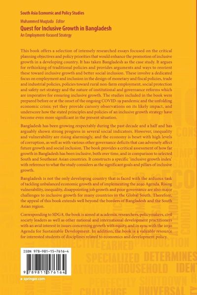 This book offers a selection of intensely researched essays focused on the critical planning objectives and policy priorities that would enhance the promotion of inclusive growth in a developing country. It has taken Bangladesh as the case study. It argues for rethinking of traditional policies and provides arguments and ways to reorient these toward inclusive growth and better social inclusion. These involve a dedicated focus on employment and inclusion in the design of monetary and fiscal policies, trade and industrial policies, policies toward rural non-farm employment, social protection and safety net strategy and the nature of institutional and governance reforms which are imperative for ensuring inclusive growth. The studies included in the book were prepared before or at the onset of the ongoing COVID-19 pandemic and the unfolding economic crisis; yet they provide cursory observations on its likely impact, and underscore how the stated principles and policies of an inclusive growth strategy have become even more significant in the present situation.