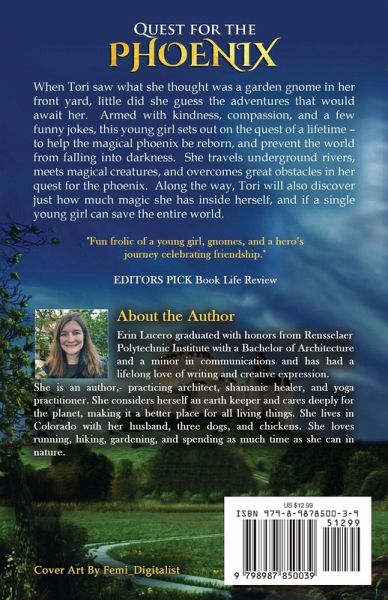 When Tori saw what she thought was a garden gnome in her back yard, little did she guess the adventures that would await her. Armed with kindness, compassion, and a few funny jokes, this young girl sets out on the quest of a lifetime - to help the magical phoenix be reborn, and prevent the world from falling into darkness. She travels underground rivers, meets magical creatures, and overcomes great obstacles in her quest for the phoenix. Along the way, Tori will also discover just how much magic she has inside herself, and if a single young girl can save the entire world.