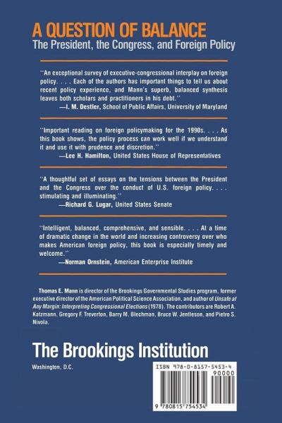 In recent years, a more active and aggressive Congress has often sharply disagreed with the president over the ends and means of American foreign policy. The normal tensions that arise in the U.S. system of separate institutions sharing power have been exacerbated by the contemporary pattern of split-party control of the two branches. The ensuing conflict in areas ranging from Central America to China has stimulated a spirited debate about the constitutional authority and institutional competence of the president and Congress to make foreign policy. In this volume, noted authors, led by Thomas Mann, examine executive-legislative relations in five major policy areas: war powers, intelligence, arms control, diplomacy, and trade. They offer a fresh analysis of the sources and consequences of conflict between the President and Congress as well as constructive suggestions for strengthening each branch's comparative advantages.