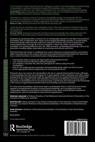 Questioning Leadership offers a diverse mix of cutting-edge research in the field of educational leadership, with contributions from expert and emerging leadership scholars. It contextualises school leadership within broader social and historical contexts and traces its influence on school performance through time, from its relatively modest role within a systems theory paradigm to its growing influence from the 1980s onwards, as exercising leadership came to be perceived as being largely responsible for improving educational outcomes. This book invites the reader to challenge the current orthodoxy of leader-centrism and instead reflect more broadly on the various structural and institutional interrelationships that determine how a school functions successfully. It poses challenging questions, such as: Is leadership really necessary for high-quality school performance? Can schools function effectively without leadership? Is it possible to describe the work that principals do without using the word 'leadership'? How do we challenge the assumption that leadership simply exists and that it is seen as the appropriate default explanation for school performance? This book does not assume that leadership is the key to organisational performance, although it acknowledges the work that principals do. It goes against current orthodoxy and offers varied perspectives on how leadership might be repositioned vis-à-vis organisational and institutional structures. It also suggests some new directions for leading and learning and throws open a discussion on leadership that for too long has been captured by the assumption that the leader is the cause of organisational performance and learning outcomes in schools. At a time when leadership's dominance seems unshakeable, this is a bold book that should appeal to postgraduate students of educational leadership and management, those undertaking training in educational administration and current school leaders interested in exploring the value of leadership for educational organisations.