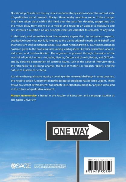 In Questioning Qualitative Inquiry Martyn Hammersley raises fundamental questions about the current state of qualitative social research. He examines some of the changes that have taken place within it over the past fifty years, suggesting that the move away from natural science as a model, and towards an appeal to literature and art, involves rejection of key principles that are essential to research of any kind.
