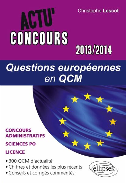 ¿ Près de 300 QCM pour réviser et tester ses connaissances sur l'actualité des questions européennes. ¿ Des informations s'appuyant sur les sources les plus fiables. Cet ouvrage est un outil indispensable pour la réussite aux concours et s'adresse tout particulièrement à celles et ceux qui préparent les concours administratifs, les concours d'entrée aux grandes écoles, à Sciences Po et aux écoles de journalisme, ou les examens et concours universitaires exigeant une bonne connaissance de l'actualité.