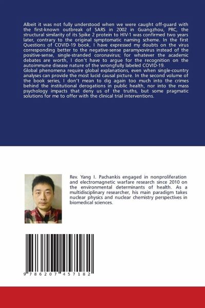 Albeit it was not fully understood when we were caught off-guard with the first-known outbreak of SARS in 2002 in Guangzhou, PRC, the structural similarity of its Spike 2 protein to HIV-1 was confirmed two years later, contrary to the original symptomatic naming scheme. In the first Questions of COVID-19 book, I have expressed my doubts on the virus corresponding better to the negative-sense paramyxovirus instead of the positive-sense, single-stranded coronavirus; for whatever the academic debates are worth, I don't have to argue for the recognition on the autoimmune disease nature of the wrongfully labeled COVID-19.Global phenomena require global explanations, even when single-country analyses can provide the most lucid causal picture. In the second volume of the book series, I don't mean to dig again too much into the crimes behind the institutional derogations in public health, nor into the mass psychology impacts that deny us of the truths, but some pragmatic solutions for meto offer with the clinical trial interventions.