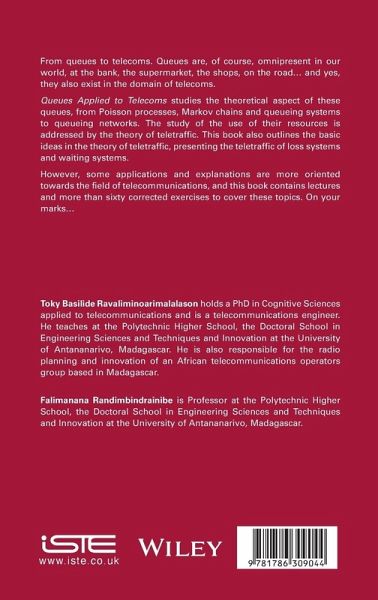 From queues to telecoms. Queues are, of course, omnipresent in our world, at the bank, the supermarket, the shops, on the road... and yes, they also exist in the domain of telecoms. Queues Applied to Telecoms studies the theoretical aspect of these queues, from Poisson processes, Markov chains and queueing systems to queueing networks. The study of the use of their resources is addressed by the theory of teletraffic. This book also outlines the basic ideas in the theory of teletraffic, presenting the teletraffic of loss systems and waiting systems. However, some applications and explanations are more oriented towards the field of telecommunications, and this book contains lectures and more than sixty corrected exercises to cover these topics. On your marks....