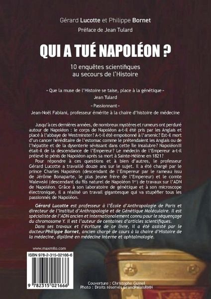 ¿Que la muse de l'Histoire se taise, place à la génétique¿ Jean Tulard ¿Passionnant¿ Jean-Noël Fabiani, professeur émérite à la chaire d'histoire de médecineJusqu'à ces dernières années, de nombreux mystères et rumeurs ont perduré autour de Napoléon : le corps de Napoléon a-t-il été pris par les Anglais et placé à l'abbaye de Westminster¿? A-t-il été empoisonné à l'arsenic¿? Est-il mort d'un cancer héréditaire de l'estomac comme le prétendaient les Anglais ou de l'hépatite et de la dysenterie sévissant dans cette île insalubre¿? Napoléon¿III était-il de la descendance de l'Empereur¿? Le médecin de l'Empereur a-t-il prélevé le pénis de Napoléon après sa mort à Sainte-Hélène en 1821¿?Pour répondre à ces questions et à bien d'autres, le professeur Gérard Lucotte a travaillé douze ans sur le sujet. Il a été chargé par le prince Charles Napoléon (descendant de l'Empereur par le rameau issu de Jérôme Bonaparte, le plus jeune frère de l'Empereur) et le comte Walewski (descendant du fils naturel de Napoléon 1er) de travaux sur l'ADN de Napoléon. Grâce à son laboratoire de génétique et à son microscope électronique, il a réalisé un travail gigantesque qui va stupéfier tous les passionnés de Napoléon.