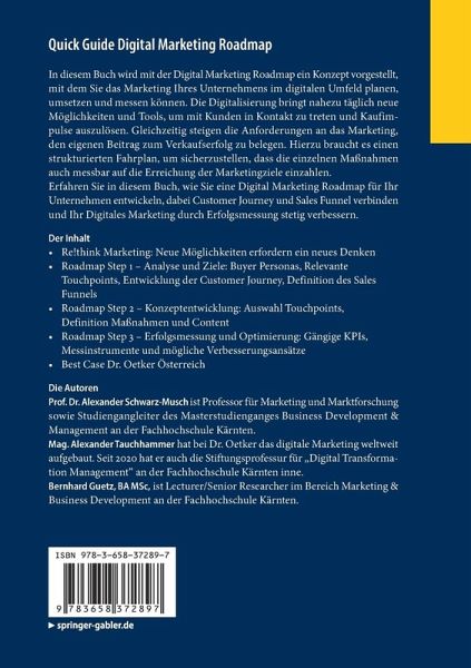 "... Alexander Schwarz-Musch, Alexander Tauchhammer und Bernhard Guetz haben in der Folge ein dreistufiges Konzept entwickelt, das sie in ihrem Buch "Quick Guide: Digital Marketing Roadmap" vorstellen. Mit einer Schritt-für-Schritt Anleitung helfen sie Marketing-Verantwortlichen dabei, den Überblick zu bewahren und führen sie durch die drei Stufen Analyse und Ziele, Konzeptentwicklung sowie Erfolgsmessung und Optimierung ..." (Kärntner Wirtschaft - Die Zeitung der Wirtschaftskammer Kärnten, 10. Februar 2023)