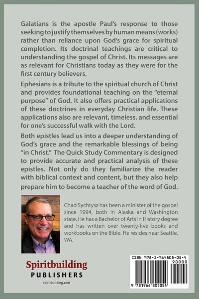 Galatians is the apostle Paul's response to those seeking to justify themselves by human means (works) rather than relying upon God's grace for spiritual completion. Its doctrinal teachings are critical to understanding the gospel of Christ, and its messages are as relevant for Christians today as they were for first-century believers. Ephesians is a tribute to the spiritual church of Christ and provides foundational teaching on the "eternal purpose" of God. It also offers practical applications of these doctrines in everyday Christian life. These applications also are relevant, timeless, and essential for one's successful walk with the Lord. Both epistles lead us to a deeper understanding of God's grace and the remarkable blessings of being "in Christ." The Quick Study Commentary is designed to provide an accurate and practical analysis of these epistles. Not only do they familiarize the reader with biblical context and content, but they also help prepare him to become a teacher of the word of God.