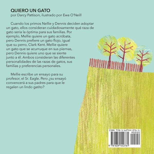 Traducido por la homenajeada de Pura Belpré, Marianna Llanos ¡Que vivan los ensayos! Todas las clases de escritura deberían ser así de animadas. Cuando los primos Mellie y Dennis deciden adoptar un gato, ellos consideran cuidadosamente qué raza de gato sería la óptima para sus familias. Por ejemplo, Mellie quiere un gato acróbata, pero Dennis prefiere un gato flojo, igual que su perro, Clark Kent. Mellie quiere un gato que se acurruque en sus piernas, pero Dennis quiere uno que se siente junto a él. Ambos consideran las diferentes personalidades de las razas de gatos, sus familias y preferencias personales. Mellie escribe un ensayo para su profesor, el Sr. Eagle. Pero ¿su ensayó convencerá a sus padres para que le regalen un lindo gatito? Esta historia toma un tema popular -niños que adoptan una mascota- y le añade gatos de variadas razas y formas: todas las clases de escritura deberían ser así de divertidas. Al final, son los perros y los primos quienes mantienen a los lectores enganchados y volteando las páginas. ¿Qué tipo de gato escogerá Mellie? ¿Dennis escogerá la misma raza? Esta historia toca varios temas:Una historia familiar sobre dos primos, Mellie y Dennis Información sobre razas de gato Responsabilidad como dueño de un gato Texto de mentor para enseñar escritura Modela un ensayo de opinión para estudiantes de primaria Modela el proceso de escritura, especialmente la importancia de escribir borradores o planear antes de escribir Completa el proceso al enseñar el ensayo finalizado de Mellie QUIERO UN GATO hace que escribir ensayos sea más fácil -- Hurrah for Essays! All writing lessons should be this much fun. SLJ Review: ". . .fills a niche for teachers. . ." When cousins Mellie and Dennis decide to get a cat, they consider carefully what breed would be best for each family. For example, Mellie wants a cat that pounces, but Dennis wants a lazy cat, like his lazy dog, Clark Kent. Mellie wants a lap cat, but Dennis just wants a warm body BESIDE him. They consider different cat personalities, family situations, and personal preferences. Mellie writes an opinion essay for her teacher, Mr. Eagle. But will her essay convince her parents to get the cat of her dreams? This story takes a popular subject-kids getting a pet-and adds cats of all sizes and shapes: all writing lessons should be this much fun. In the end, it's the cousins and the cats that keep a reader turning the page. What kind of cat will Mellie choose? Will Dennis want the same kind of cat?