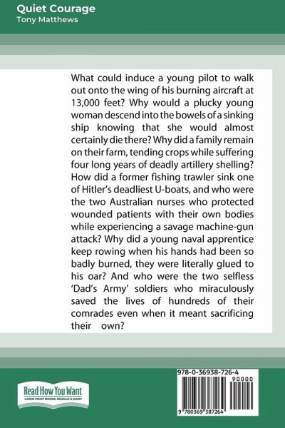What could induce a young pilot to walk out onto the wing of his burning aircraft at 13,000 feet? Why would a plucky young woman descend into the bowels of a sinking ship knowing that she would almost certainly die there? Why did a family remain on their farm, tending crops while suffering four long years of deadly artillery shelling? How did a ...