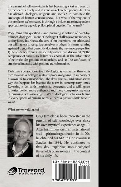 This book is written for people who want to pursue self-knowledge without commiting to an ideology. It is for those who have explored ideologies and recognized that they have been asked to comply with authority rather than trust their own inner compass. Increasingly, people are foregoing the hard work of personal transformation by relinquishing their sovereignty to ideologies and their authorities. These ideologies can be secular or religious, focused on everything from politics to economics. Each time a person looks to such systems rather than to his own awareness, he begins a steady process of compromise. That compromise has been made easier over the last few decades because of 4 things: 1) Society's normalization of narcissitic behavior, 2) The willingness of people to forego the work of forging genuinely intimate relationships, 3) The collective adoption of "meta-narratives" which portray a historically distorted view of human nature, and 4) A collective addiction to emotionally-based intensity as a substitute for genuine aliveness. The phenomenological account provided in this book recounts one person's desire to honor a childhood mystical experience - not through adhering to someone else's ideas about self-knowledge, but through the directly engaging the world.