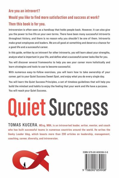 Would you believe that half of the population of the planet are introverts? Not really? Well, it is the quiet half, and they're not so visible! Introversion is a powerful force in our lives. It impacts how we pick our friends, what jobs we get, and how we interact with others. Are you an introvert? Are you unhappy at work? Do you believe your job doesn't lead anywhere? Would you like to find more satisfaction and success at work? Then this book is for you. Introversion is often seen as a handicap that holds us back, but it can also give us the power to live our lives on our terms. There have been many successful introverts throughout history, and there is no reason why you shouldn't be one of them. Introverts make great employees and leaders. We are all good at something and deserve a chance for a good life and a successful career. In this guide, you will learn about your strengths, analyze what is important in your life, and define what a successful career means to you. You will then be presented with several frameworks to help you see your career more holistically and wrap your mind around strategies, tools, and principles to use to become successful. With numerous practical exercises, you will learn how to take ownership of your career, get to your Sweet Spot, and enjoy the feeling that your work and life have meaning. You will reach your Quiet Success.