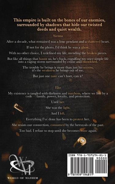 **This is the start of a series. It may contain triggers and ends on a cliffhanger.** This empire is built on the bones of our enemies, surrounded by shadows that hide our twisted deeds and quiet wealth. Sienna After a decade, what remained was a lone pendant and a shattered heart. If not for the photo, I'd think he was a ghost. With no other choice, I redefined my life, mending the broken pieces. But like all things that haunt us, he's back, engulfing my once simple life into a raging storm surrounded by crime and bloodshed. The trouble he brings is more than just his secrets; it's the weakness he brings out of me. But just one taste can't hurt, can it? ElioMy existence is tangled with darkness and mayhem, where we live by a code-family, power, loyalty, and protection. Until her. She was the light. And I left. Everything I've done has been to protect her. She resists our connection, consumed by the betrayals of the past. Too bad. I refuse to stop until she becomes mine again.