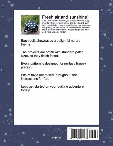 Here is a quilt pattern book for people with an active lifestyle who love adventure. The projects are small and simple to piece so you can get done and get going.