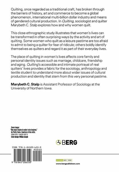 Quilting, once regarded as a traditional craft, has broken through the barriers of history, art and commerce to become a global phenomenon, international multi-billion dollar industry and means of gendered cultural production. In Quilting, sociologist and quilter Marybeth C. Stalp explores how and why women quilt.This close ethnographic study illustrates that women's lives can be transformed in often surprising ways by the activity and art of quilting. Some women who quilt as a leisure pastime are too afraid to admit to being a quilter for fear of ridicule; others boldly identify themselves as quilters and regard it as part of their everyday lives.The place of quilting in women's lives affects core family and personal identity issues such as marriage, childcare, friendship and aging. The book's accessible and intimate portrayal of real quilters' lives provides a fabric for the sociology, anthropology and textile student to understand more about wider issues of cultural production and identity that stem from this very personal pastime.