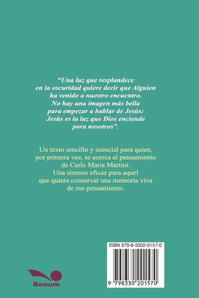 "Una luz que resplandece en la oscuridad quiere decir que Alguien ha venido a nuestro encuentro. No hay una imagen más bella para empezar a hablar de Jesús: Jesús es la luz que Dios enciende para nosotros". Un texto sencillo y esencial para quien, por primera vez, se acerca al pensamiento de Carlo Maria Martini. Una síntesis eficaz para aquel que quiere conservar una memoria viva de ese pensamiento. EDITORIAL BONUM ARGENTINA Este libro contiene el desarrollo de los siguientes temas, entre otros:¿Has probado encontrarte en la oscuridad? ¿Cuánta luz es necesaria para vencer la oscuridad? En tu pesebre, ¿alguien habla? Jesús es la luz en la oscuridad y la palabra en el silencio Hagamos lo mismo que los pastores ¿Qué quiere decir "Cristo"? ¿Cómo se hace para reconocer a Jesús Mesías? Con este libro usted podrá conocer acerca de Jesús recorriendo sus enseñanzas. ¡Adquiera ya este libro y aprenda más sobre El Gran Maestro!