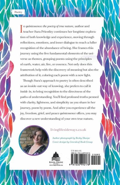 In quintessence: the poetry of true nature, author and teacher Sara Priestley continues her longtime exploration of both knowledge and experience, moving through reflections, emotions, and inner dialogue to reach a fuller recognition of the abundance of being. She frames this journey using the five fundamental elements of the universe as themes, grouping poems using the principles of earth, water, air, fire, or essence. Not only does this framework help with the discovery of meaning but also the attribution of it, coloring each poem with a new light. Though Sara's approach to poetry is often…mehr