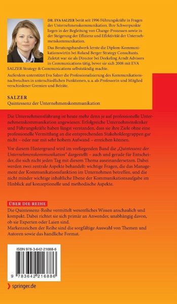 "... Mit ihnen bricht sie bereits aus der Theorie heraus und beschreibt zwei der wichtigsten Einflussgrößen in der Unternehmenskommunikation. ... Ein Mehrwert des Buchs besteht darin, dass Eva Salzer nicht nur Theorie vermittelt, sondern auch ein realistisches Bild von der Arbeit der Kommunikationsmanager im Unternehmen aufzeigt ... und viele Entscheidungen werden von ihnen nach wie vor aus dem Bauch getroffen. ... Wer sich allgemein in gut verständlicher Sprache einen allgemeinen, realitatsnähen Überblick verschaffen möchte, ist mit dem Kauf dieses Buches gut beraten." (Gerhard A. Pfeffer, in: PR-Journal www.pr-journal.de, 28/May/2012)