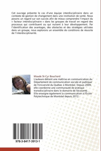 Cet ouvrage présente le cas d'une équipe interdisciplinaire dans un contexte de gestion de changement dans une institution de santé. Nous posons un regard sur son succès afin de mieux comprendre l'impact du « facteur interdisciplinaire » dans les groupes de travail en regard des processus qui contribuent ou qui nuisent à leur développement. Par l'identification des avantages, des obstacles et des stratégies utilisées dans un groupe, nous explorons un ensemble de conditions de réussite de l'interdisciplinarité.