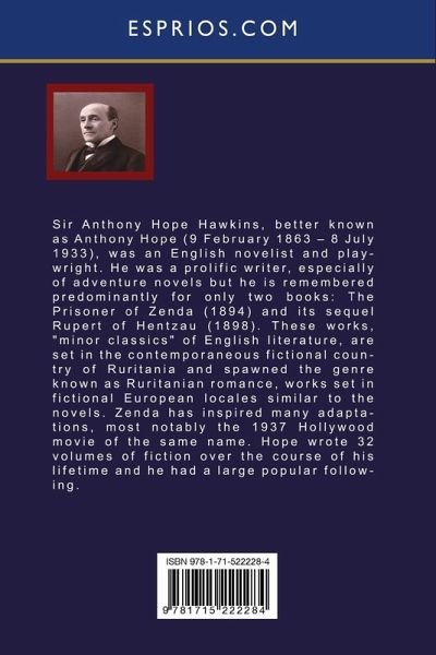 Sir Anthony Hope Hawkins, better known as Anthony Hope (9 February 1863 - 8 July 1933), was an English novelist and playwright. He was a prolific writer, especially of adventure novels but he is remembered predominantly for only two books: The Prisoner of Zenda (1894) and its sequel Rupert of Hentzau (1898). These works, "minor classics" of English literature, are set in the contemporaneous fictional country of Ruritania and spawned the genre known as Ruritanian romance, works set in fictional European locales similar to the novels. Zenda has inspired many adaptations, most notably the 1937…mehr