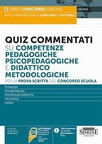 Il testo "Quiz Commentati su competenze pedagogiche, psicopedagogiche e didattico metodologiche" costituisce un¿ampia raccolta di test commentati per coloro che devono prepararsi a sostenere la prova scritta del concorso scuola e straordinario ter 2023. (leggi gli articoli sui concorsi sul nostro Blog) Il libro, in aderenza dal programma d¿esame del concorso a cattedra, è suddiviso in quattro parti: Competenze pedagogiche e psicopedagogiche compresi gli aspetti relativi all¿inclusione Competenze didattico-metodologie compresi gli aspetti relativi alla valutazione Informatica Inglese I quesiti e i relativi commenti su competenze pedagogiche, psicopedagogiche e didattico metodologiche sono stati selezionati in modo da costituire un valido ripasso degli argomenti che più frequentemente rappresentano oggetto delle prove ma anche uno spunto per l¿approfondimento di tematiche particolari e attuali. Online è possibile trovare la parte teorica di informatica e inglese e un software con migliaia di quiz che consente di esercitarsi e simulare la prova d¿esame del concorso docenti. Per completare la preparazione si consiglia "Manuale per la prova scritta Discipline pedagogiche e psicopedagogiche didattico-metodologiche". Das Urheberrecht an bibliographischen und produktbeschreibenden Daten und an den bereitgestellten Bildern liegt bei Informazioni Editoriali, I.E. S.r.l., oder beim Herausgeber oder demjenigen, der die Genehmigung erteilt hat. Alle Rechte vorbehalten.
