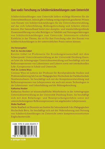 Kapitel 1: Forschungslage zu Validität und Nutzung von Schülerrückmeldungen. - Kapitel 2: Schülerrückmeldungen in Schulpraxis und Lehrpersonenausbildung - konzeptionelle und empirische Arbeiten.