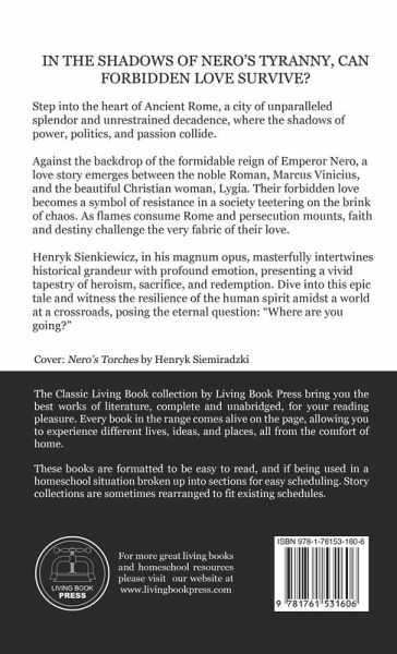 Step into the heart of Ancient Rome, a city of unparalleled splendor and unrestrained decadence, where the shadows of power, politics, and passion collide. Against the backdrop of the formidable reign of Emperor Nero, a love story emerges between the noble Roman, Marcus Vinicius, and the beautiful Christian woman, Lygia. Their forbidden love becomes a symbol of resistance in a society teetering on the brink of chaos. As flames consume Rome and persecution mounts, faith and destiny challenge the very fabric of their love. Henryk Sienkiewicz, in his magnum opus, masterfully intertwines historical grandeur with profound emotion, presenting a vivid tapestry of heroism, sacrifice, and redemption. Dive into this epic tale and witness the resilience of the human spirit amidst a world at a crossroads, posing the eternal question: "Where are you going?"
