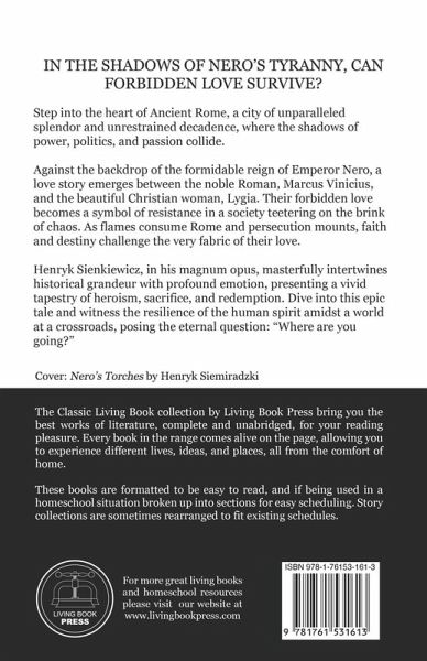 Step into the heart of Ancient Rome, a city of unparalleled splendor and unrestrained decadence, where the shadows of power, politics, and passion collide. Against the backdrop of the formidable reign of Emperor Nero, a love story emerges between the noble Roman, Marcus Vinicius, and the beautiful Christian woman, Lygia. Their forbidden love becomes a symbol of resistance in a society teetering on the brink of chaos. As flames consume Rome and persecution mounts, faith and destiny challenge the very fabric of their love. Henryk Sienkiewicz, in his magnum opus, masterfully intertwines historical grandeur with profound emotion, presenting a vivid tapestry of heroism, sacrifice, and redemption. Dive into this epic tale and witness the resilience of the human spirit amidst a world at a crossroads, posing the eternal question: "Where are you going?"