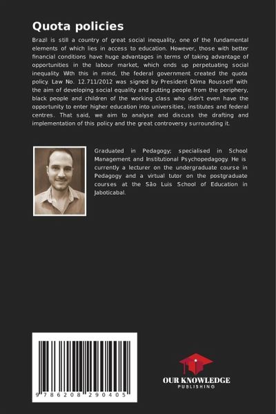 Brazil is still a country of great social inequality, one of the fundamental elements of which lies in access to education. However, those with better financial conditions have huge advantages in terms of taking advantage of opportunities in the labour market, which ends up perpetuating social inequality. With this in mind, the federal government created the quota policy. Law No. 12.711/2012 was signed by President Dilma Rousseff with the aim of developing social equality and putting people from the periphery, black people and children of the working class who didn't even have the opportunity to enter higher education into universities, institutes and federal centres. That said, we aim to analyse and discuss the drafting and implementation of this policy and the great controversy surrounding it.