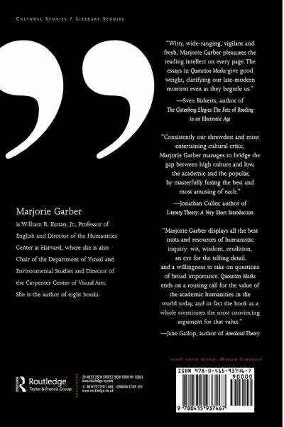 Written with characteristic verve, Quotation Marks considers, among other subjects, how we depend upon the most quotable men and women in history, using great writers to bolster what we ourselves have to say. The entertaining turns and reversals of Marjorie Garber's arguments offer the rare pleasure of a true essayist.