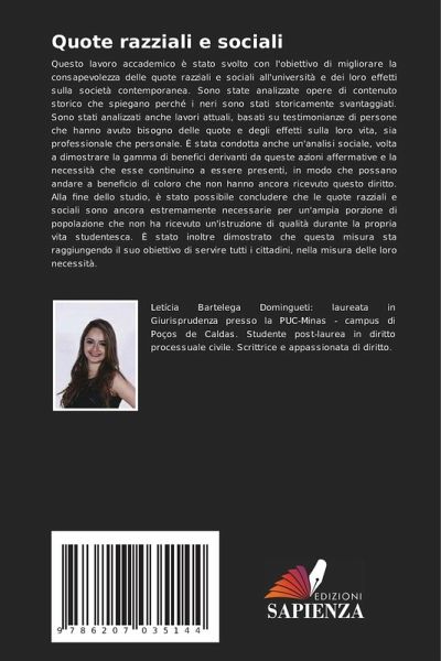 Questo lavoro accademico è stato svolto con l'obiettivo di migliorare la consapevolezza delle quote razziali e sociali all'università e dei loro effetti sulla società contemporanea. Sono state analizzate opere di contenuto storico che spiegano perché i neri sono stati storicamente svantaggiati. Sono stati analizzati anche lavori attuali, basati su testimonianze di persone che hanno avuto bisogno delle quote e degli effetti sulla loro vita, sia professionale che personale. È stata condotta anche un'analisi sociale, volta a dimostrare la gamma di benefici derivanti da queste azioni affermative e la necessità che esse continuino a essere presenti, in modo che possano andare a beneficio di coloro che non hanno ancora ricevuto questo diritto. Alla fine dello studio, è stato possibile concludere che le quote razziali e sociali sono ancora estremamente necessarie per un'ampia porzione di popolazione che non ha ricevuto un'istruzione di qualità durante la propria vita studentesca. È stato inoltre dimostrato che questa misura sta raggiungendo il suo obiettivo di servire tutti i cittadini, nella misura delle loro necessità.