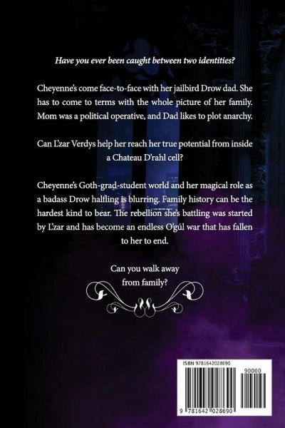 Have you ever been caught between two identities? Cheyenne's come face-to-face with her jailbird Drow dad. She has to come to terms with the whole picture of her family. Mom was a political operative, and Dad likes to plot anarchy. Can L'zar Verdys help her reach her true potential from inside a Chateau D'rahl cell? Cheyenne's Goth-grad-student world and her magical role as a badass Drow halfling is blurring. Family history can be the hardest kind to bear. The rebellion she's battling was started by L'zar and has become an endless O'gúl war that has fallen to her to end. Can you walk away from family? Not if you're Cheyenne Summerling. Her mother didn't raise a quitter. Are these new discoveries enough to help her complete her trials? Will she master her powerful new abilities in time to save the people she loves? Join us in the next super-sized 3 book adventure in Quote the Drow Nevermore and take the ride.