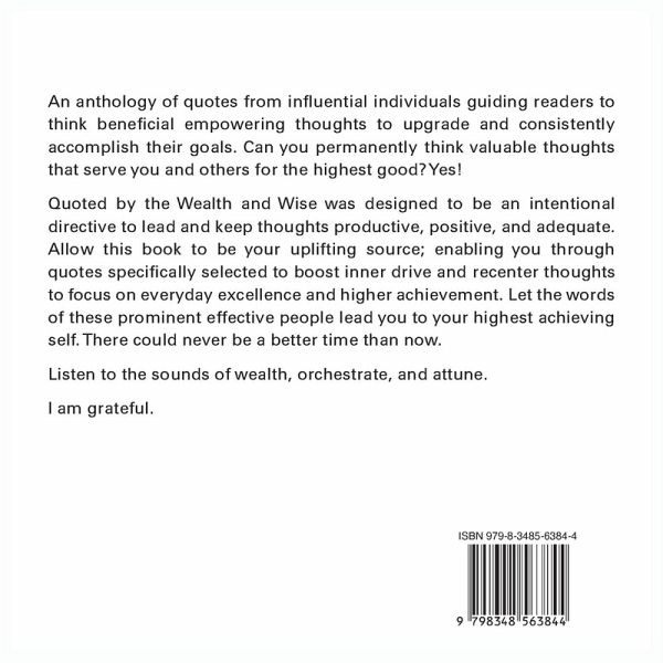 An anthology of quotes from influential individuals guiding readers to think beneficial empowering thoughts to upgrade and consistently accomplish their goals. Can you permanently think valuable thoughts that serve you and others for the highest good? Yes!