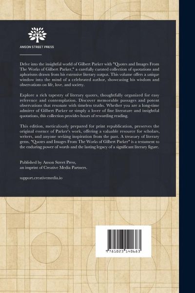 Delve into the insightful world of Gilbert Parker with "Quotes and Images From The Works of Gilbert Parker," a carefully curated collection of quotations and aphorisms drawn from his extensive literary output. This volume offers a unique window into the mind of a celebrated author, showcasing his wisdom and observations on life, love, and society. Explore a rich tapestry of literary quotes, thoughtfully organized for easy reference and contemplation. Discover memorable passages and potent observations that resonate with timeless truths. Whether you are a long-time admirer of Gilbert Parker or simply a lover of fine literature and insightful quotations, this collection provides hours of rewarding reading. This edition, meticulously prepared for print republication, preserves the original essence of Parker's work, offering a valuable resource for scholars, writers, and anyone seeking inspiration from the past. A treasury of literary gems, "Quotes and Images From The Works of Gilbert Parker" is a testament to the enduring power of words and the lasting legacy of a significant literary figure. This work has been selected by scholars as being culturally important, and is part of the knowledge base of civilization as we know it. This work is in the public domain in the United States of America, and possibly other nations. Within the United States, you may freely copy and distribute this work, as no entity (individual or corporate) has a copyright on the body of the work. Scholars believe, and we concur, that this work is important enough to be preserved, reproduced, and made generally available to the public. We appreciate your support of the preservation process, and thank you for being an important part of keeping this knowledge alive and relevant.