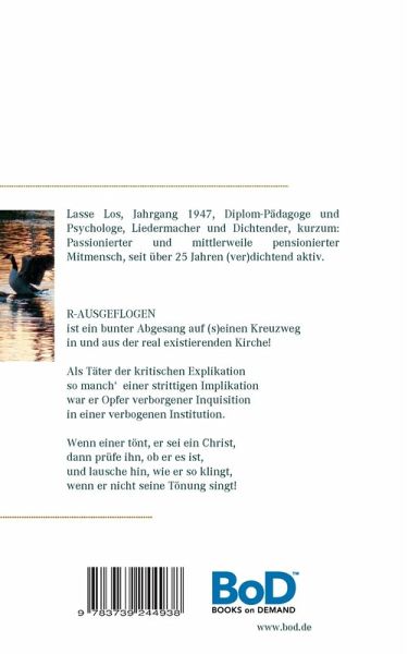 R-Ausgeflogen ist ein bunter Abgesang auf (s)einen Kreuzweg in und aus der real existierenden Kirche!Als Täter der kritischen Explikation so manch' einer strittigen Implikation war er Opfer verborgener Inquisition in einer verbogenen Institution.Wenn einer tönt, er sei ein Christ, dann prüfe ihn, ob er es ist, und lausche hin, wie er so klingt, wenn er nicht seine Tönung singt!