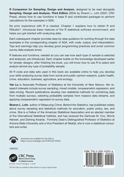 The R Companion for Sampling: Design and Analysis, designed to be read alongside Sampling: Design and Analysis, Third Edition by Sharon L. Lohr (SDA; 2022, CRC Press), shows how to use functions in base R and contributed packages to perform calculations for the examples in SDA.