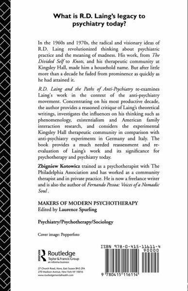 In the 1960s and 1970s, the radical and visionary ideas of R. D. Laing revolutionized thinking about psychiatric practice and the meaning of madness. His work, from The Divided Self to Knots, and his therapeutic community at Kingsley Hall, made him a household name. But after little more than a decade he faded from prominence as quickly as he had attained it. R.D.Laing and the Paths of Anti-Psychiatry re-examines Laing's work in the context of the anti-psychiatry movement. Concentrating on his most productive decade, the author provides a reasoned critique of Laing's theoretical writings, investigates the influences on his thinking such as phenomenology, existentialism and American family interaction research, and considers the experimental Kingsley Hall therapeutic community in comparison with anti-psychiatry experiments in Germany and Italy. The book provides a much needed reassessment and re-evaluation of Laing's work and its significance for psychotherapy and psychiatry today.