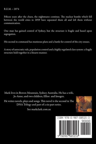 R.E.M. – 2074 Fifteen years after the chaos, the nightmares continue. The nuclear bombs which fell between the world cities in 2059 have separated them all and left them without communication. One man has gained control of Sydney, but the structure is fragile and based upon segregation. His second in command has mutinous plans and a battle for control of the city ensues. A story of autocratic rule, population control and a highly regulated class system: a fragile structure held together in a bizarre manner.
