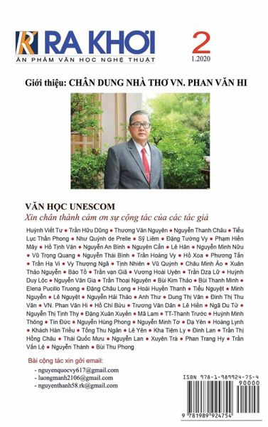 T¿P CHÍ V¿N H¿C NGH¿ THU¿T, XUÂN CANH TÝ 2020, S¿ 2, Phát hành: 1/1/2020NHÓM CH¿ TR¿¿NG: Ban biên sön V¿n h¿c Unescom. C¿NG TÁC TRONG S¿ NÀY: Hu¿nh Vi¿t T¿, Tr¿n H¿u D¿ng, Th¿¿ng V¿n Nguyên, Nguy¿n Thanh Châu, Ti¿u L¿c Th¿n Phong, Nh¿ Qu¿nh de Prelle, S¿ Liêm, ¿¿ng T¿¿ng Vy, Ph¿m Hi¿n Mây, H¿ T¿nh V¿n, Nguy¿n An Bình, Nguyên C¿n, Lê Hân, Nguy¿n Minh N¿u, V¿ Tr¿ng Quang, Nguy¿n Thái Bình, Tr¿n Hoàng Vy, H¿ Xoa, Ph¿¿ng T¿n, Tr¿n H¿ Vi, Vy Th¿¿ng Ngã, T¿nh Nhiên, V¿ Qu¿nh, Châu Minh ¿o, Xuân Th¿o Nguy¿n, Bào T¿, Tr¿n v¿n Giã, V¿¿ng Hoài Uyên, Tr¿n Dz¿ L¿, Hu¿nh Duy L¿c, Nguy¿n V¿n Gia, Tr¿n Thöi Nguyên, Bùi Kim Th¿o, Bùi Thanh Minh, Elena Pucillo Truong, ¿¿ng Châu Long, Hoài Huy¿n Thanh, Ti¿u Nguy¿t, Minh Nguy¿n, Lê Nguy¿t, Nguy¿n H¿i Th¿o, Anh Th¿, Dung Th¿ Vân, ¿inh Th¿ Thu Vân, VN. Phan V¿n Hi, H¿ Chí B¿u, Tr¿¿ng V¿n Dân, Lê Hi¿n, Ngã Du T¿, Nguy¿n Th¿ T¿nh Thy, ¿¿ng Xuân Xuy¿n, Mã Lam, TT-Thanh Tr¿¿c, Hu¿nh Minh Thông, Tín ¿¿c, Nguy¿n Hùng Phong, Nguy¿n Minh T¿, D¿ Yên, Hoàng Lynh, Khách Hàn Tri¿u, T¿ng Thu Ngân, Lê Yên, Kha Ti¿m Ly, ¿inh Lan, Tr¿n Th¿ H¿ng Châu, Thái Qu¿c M¿u, Nguy¿n Lan, Xuyên Trà, Phan Trang Hy, Tr¿n V¿n L¿, Nguy¿n Thành, Bùi Thu PhongBÌA: Nguy¿n thành DÀN TRANG & ¿¿C B¿N TH¿O: Nguy¿n Thành