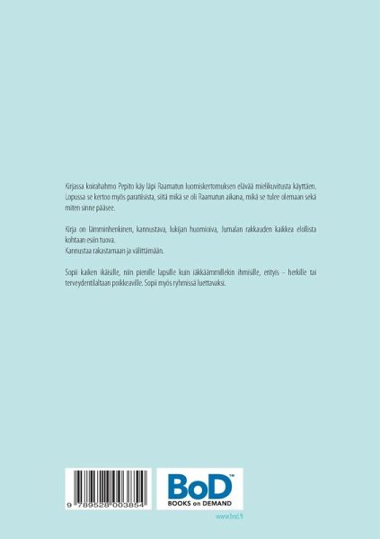 Kirjassa koirahahmo Pepito käy läpi Raamatun luomiskertomuksen elävää mielikuvitusta käyttäen. Lopussa se kertoo myös paratiisista, siitä mikä se oli Raamatun aikana, mikä se tulee olemaan sekä miten sinne pääsee. Kirja on lämminhenkinen, kannustava, lukijan huomioiva, Jumalan rakkauden kaikkea elollista kohtaan esiin tuova. Kannustaa rakastamaan ja välittämään. Sopii kaiken ikäisille, niin pienille lapsille kuin iäkkäämmillekin ihmisille, erityis - herkille tai terveydentilaltaan poikkeaville. Sopii myös ryhmissä luettavaksi.