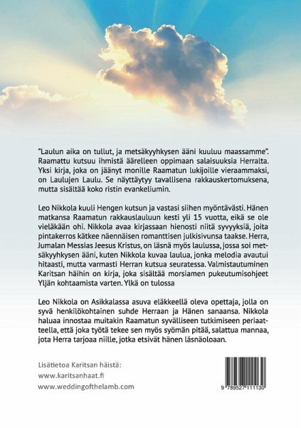 Valmistautuminen Karitsan häihin on Leo Nikkolan esikoisteos ja se avaa syvällisellä tavalla Salomonin Laulujen laulu kirjaa, jota on sanottu myös Raamatun rakkauslauluksi. Kirja käy läpi Laulujen laulun 4 ensimmäistä lukua ja tuo näkyväksi morsiamen valmistautumisen yljän kohtaamiseen. Kirja lähestyy Laulujen laulua yksittäisen uskovan henkilökohtaisesta näkökulmasta.
