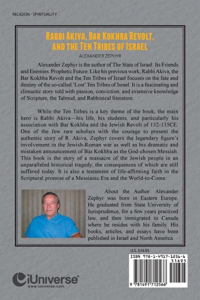 Alexander Zephyr is the author of The State of Israel: Its Friends and Enemies. Prophetic Future. Like his previous work, Rabbi Akiva, the Bar Kokhba Revolt and the Ten Tribes of Israel focuses on the fate and destiny of the so-called 'Lost' Ten Tribes of Israel. It is a fascinating and climactic story told with passion, conviction, and extensive knowledge of Scripture, the Talmud, and Rabbinical literature. While the Ten Tribes is a key theme of the book, the main hero is Rabbi Akiva-his life, his students, and particularly his association with Bar Kokhba and the Jewish Revolt of 132-135CE. One of the few rare scholars with the courage to present the authentic story of R. Akiva, Zephyr covers the legendary figure's involvement in the Jewish-Roman war as well as his dramatic and mistaken announcement of Bar Kokhba as the God-chosen Messiah. This book is the story of a massacre of the Jewish people in an unparalleled historical tragedy, the consequences of which are still suffered today. It is also a testament of life-affirming faith in the Scriptural promise of a Messianic Era and the World-to-Come.